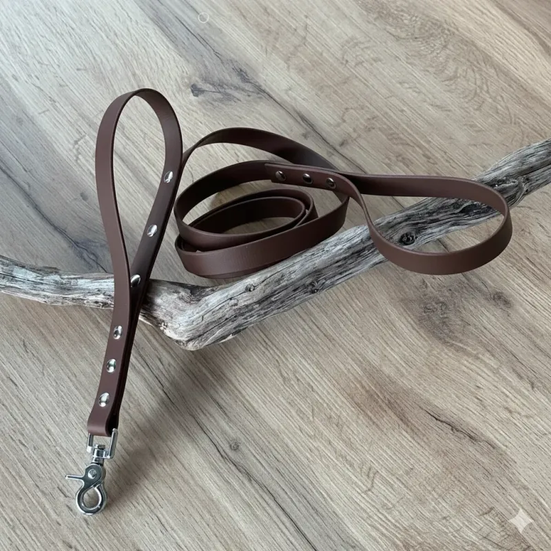 Vous préférez un autre coloris ? Cette laisse est également disponible en bordeaux, en noir et en bleu et vous pouvez l'assortir au collier pour chien en Biothane marron.